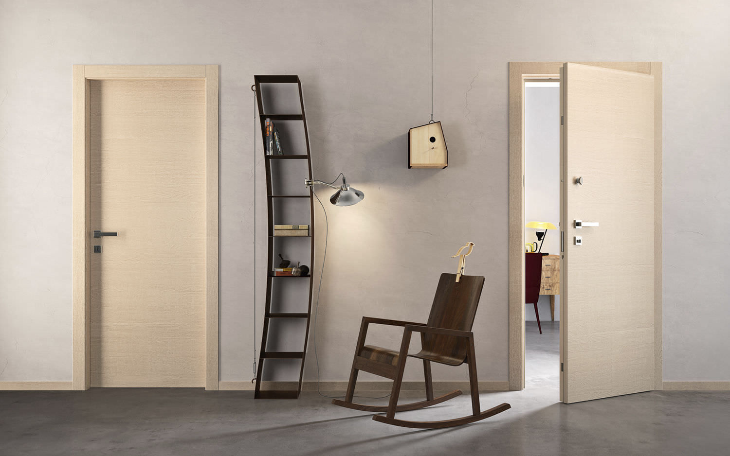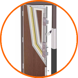 يحيط بالباب العصري المصفح جلبة كاوتش كالمستخدمة في ابواب الثلاجات لمنع الأتربة والحشرات . كما ان الباب المصفح محشو بمادة الصوف الصخري Rockwool لمنع الصوت .